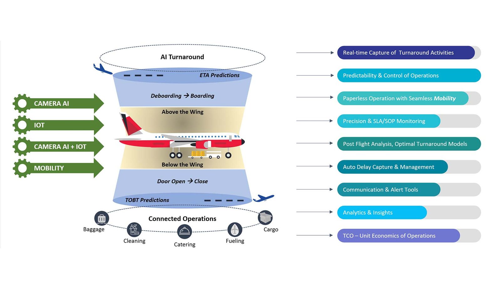 It seamlessly connects People, Places, Assets, and Operations to automate over 100 turnaround activity coverage  both above and below the wing.